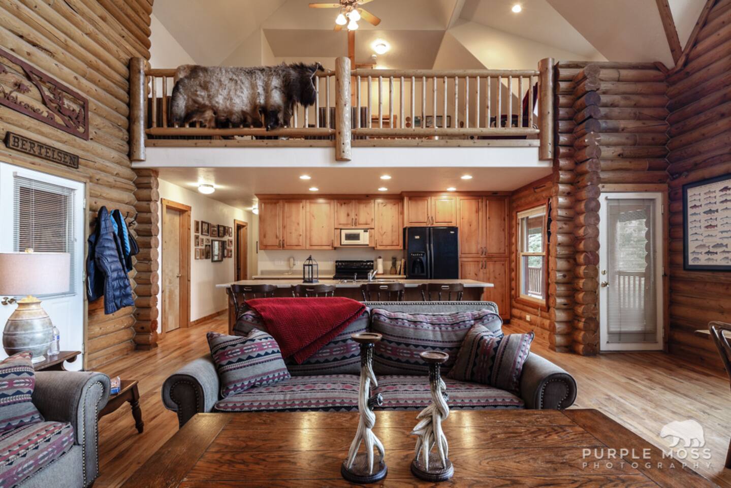 The cabin is roughly 2400 square feet and it is situated directly on the shores of Scofield Reservoir. You will be able to watch the sunrise and from the bay windows or out on the covered porch. It is surprisingly quiet on the lake and great fun to just enjoy the days.